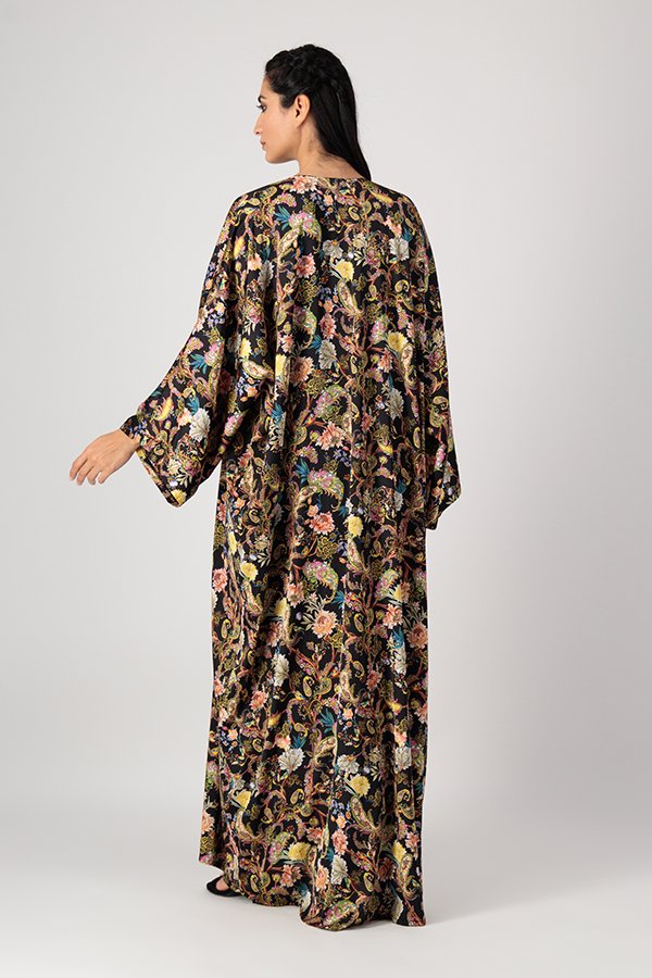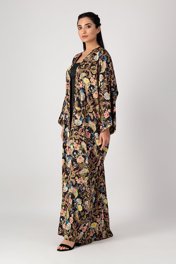 Classic cut abaya in printed paisley silk