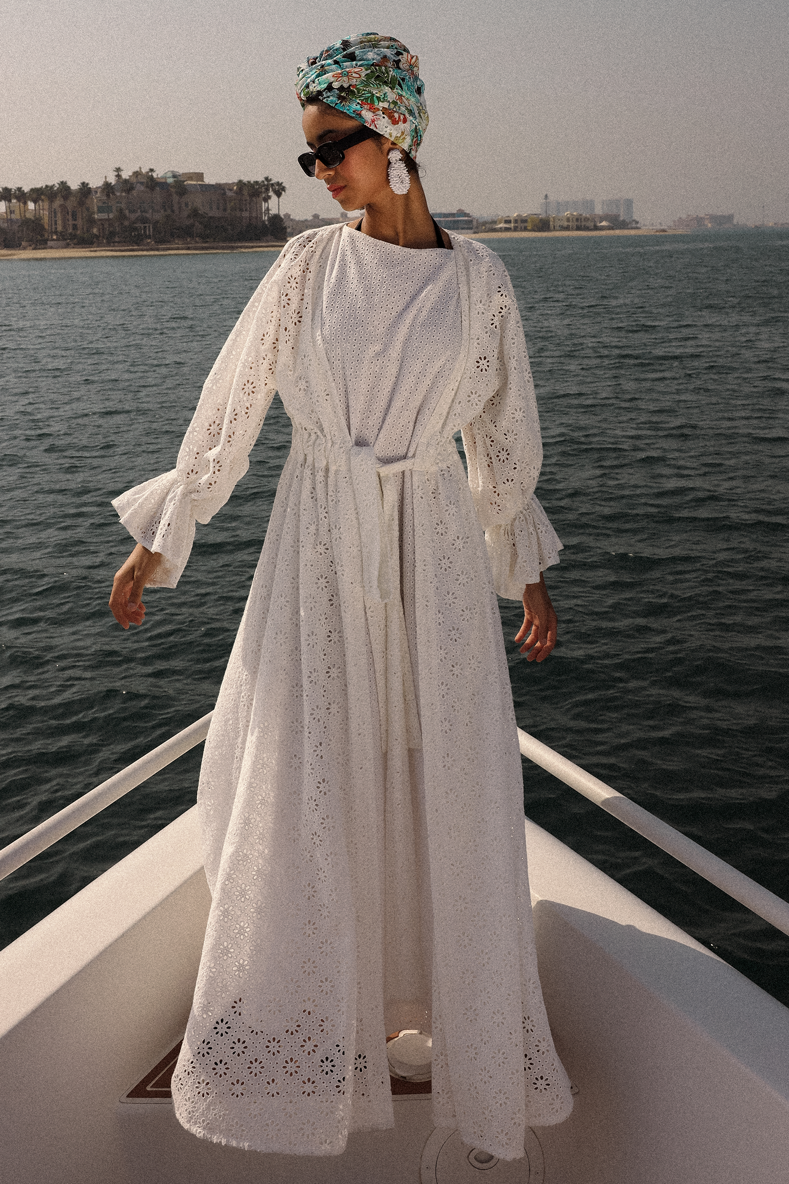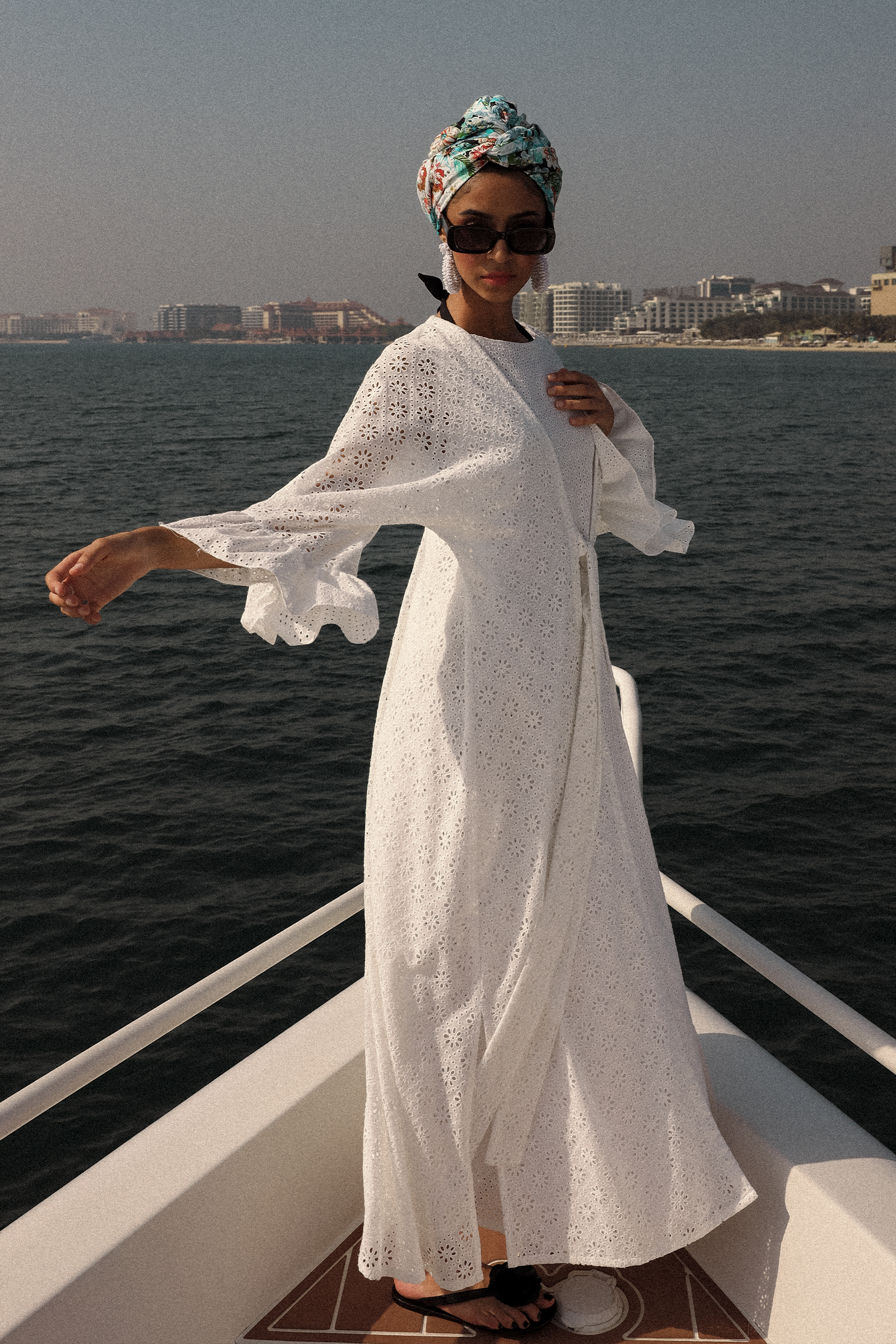 Fleuri Breeze Abaya with Front Tie-Up and Flared Sleeve
