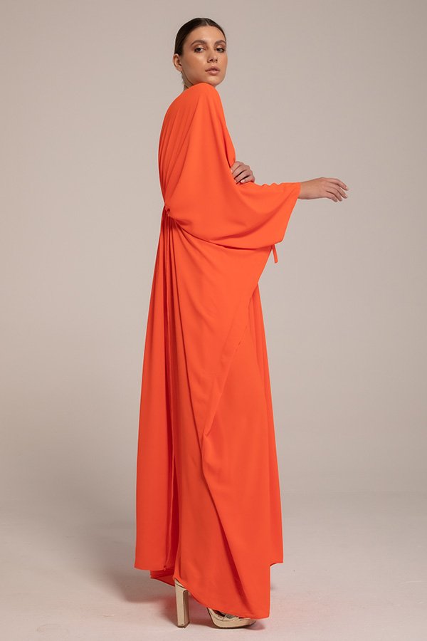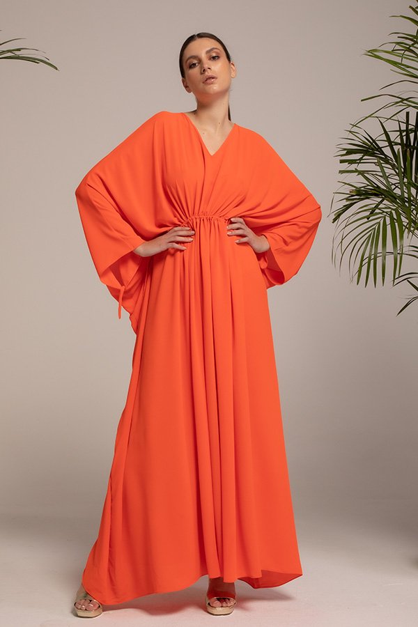 Silky crepe kaftan with embellished neckline
