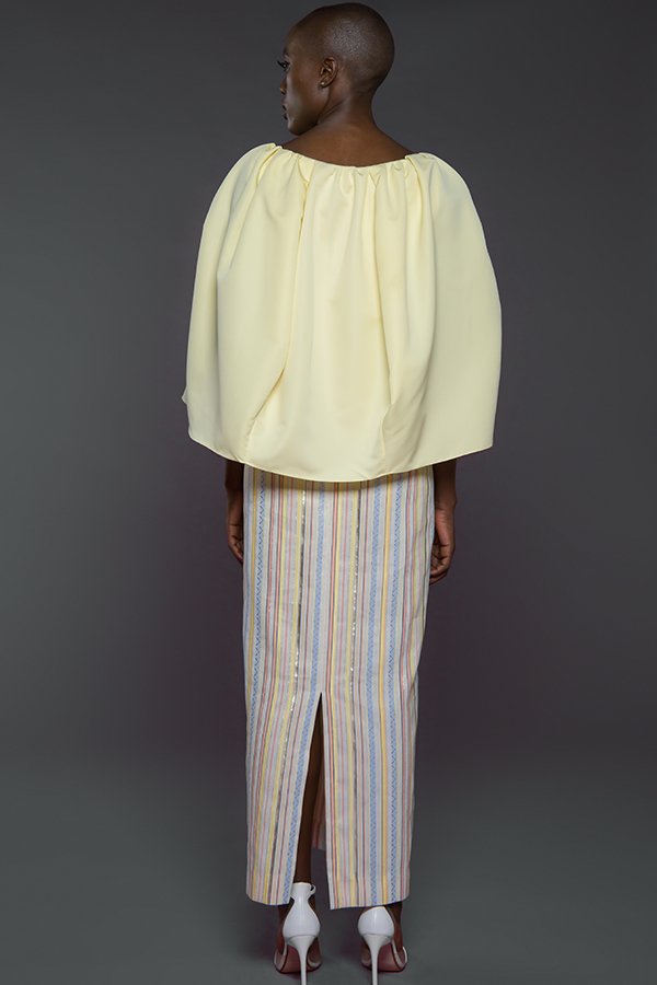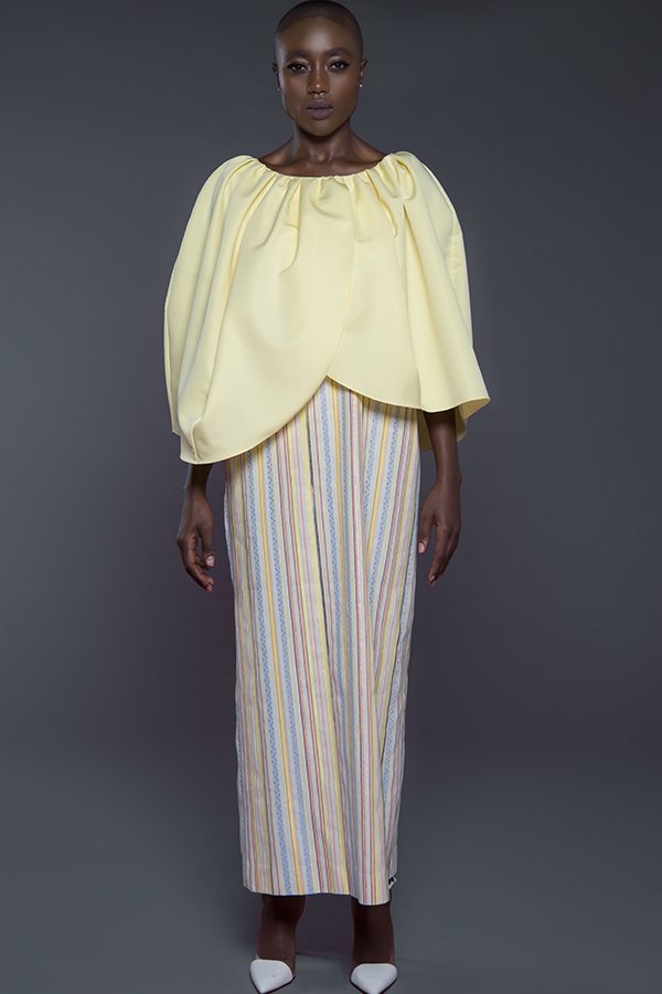 Layered Kaftan with overlapping cape sleeves and canvas bottom