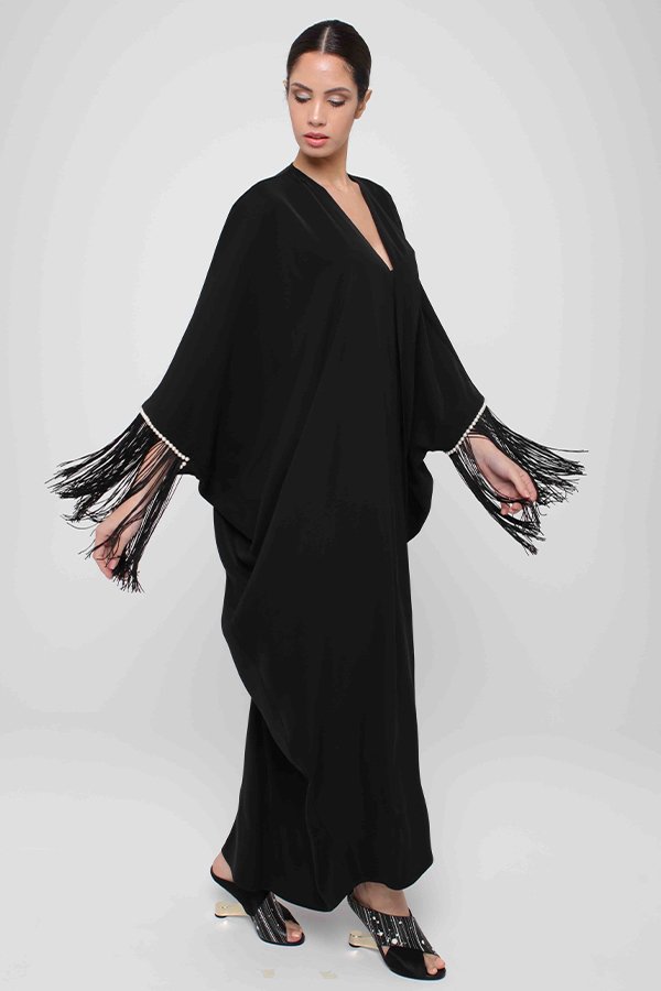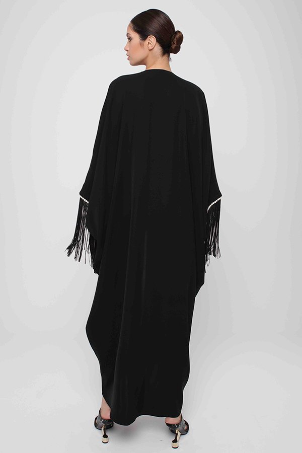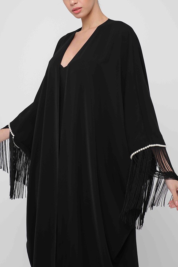 Mariposa crepe abaya with fringed sleeve embellished with pearls