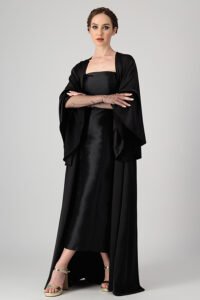 Crepe Silk Kaftan in Mariposa Cut and Slitted Sleeves with One Shoulder 3D Embellishment